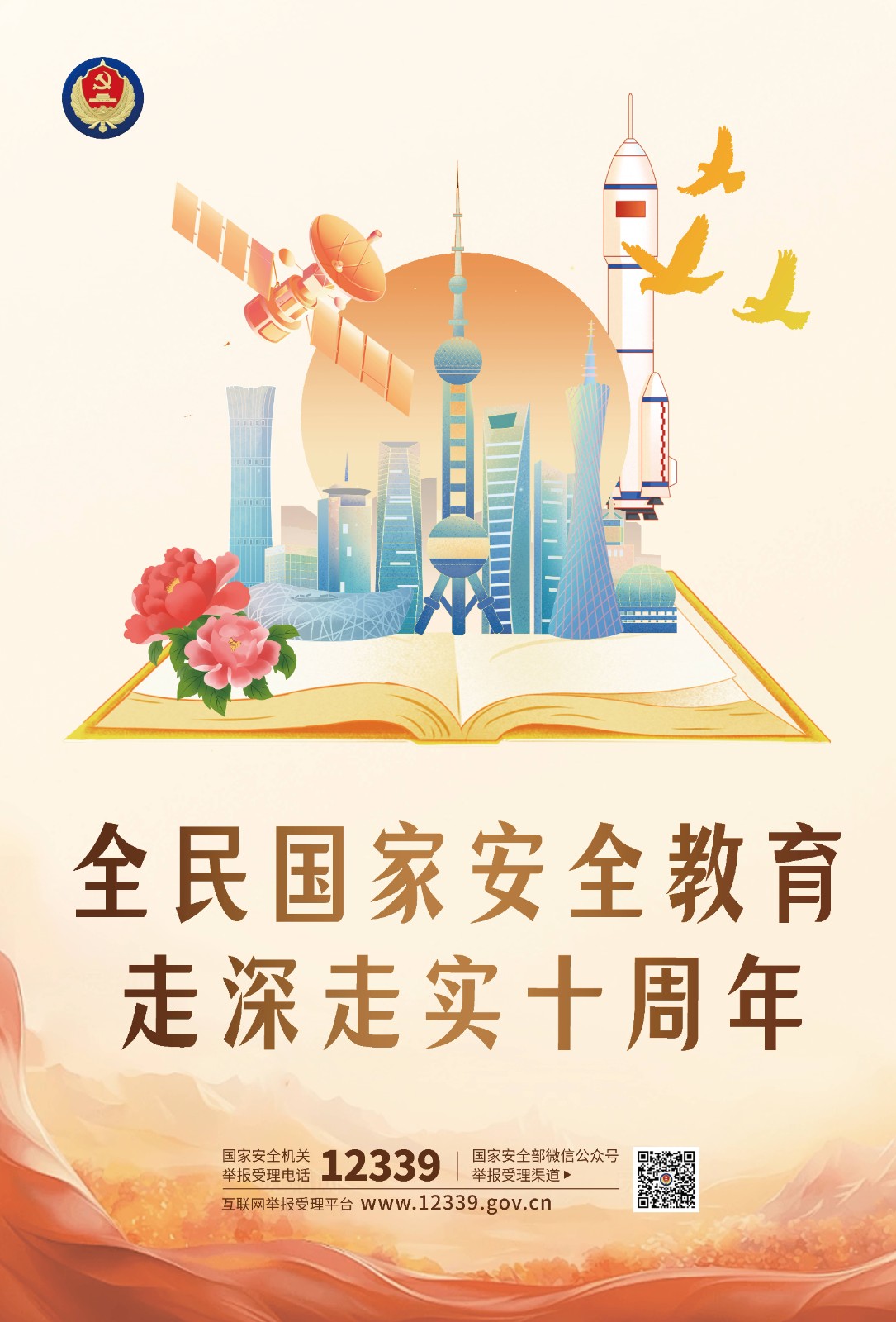 2025年4月15日是第十個全民國家安全教育日,今年的主題是:全民國家安全教育,走深走實十周年。國安宣工作室發(fā)布系列海報,強調要堅定不移貫徹總體國家安全觀,推進國家安全體系和能力現(xiàn)代化,完善國家安全法治體系,提升國家安全工作法治化水平。